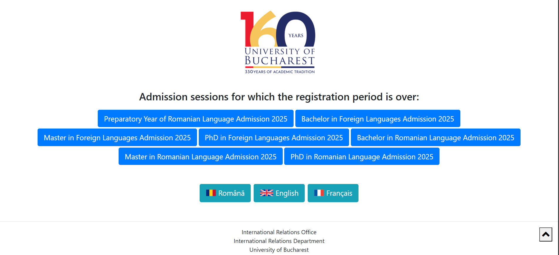 STEP 1: Access the admission Platform and click the desired language or the Preparatory Year of Romanian Language button in order to register.
